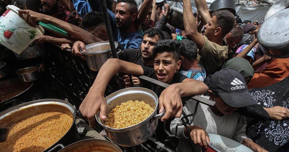 "La mayoría de los palestinos en Gaza ahora solo pueden recurrir a comedores comunitarios abarrotados, donde las personas desplazadas soportan largas esperas para obtener un sustento mínimo, a menudo tan solo una comida al día", dice el informe.