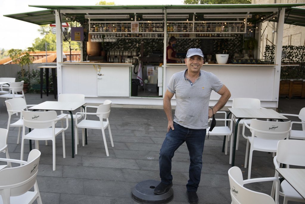 Fernando Ochagavía, encargado del bar Malkoa, en la terraza del Jito Alai.
