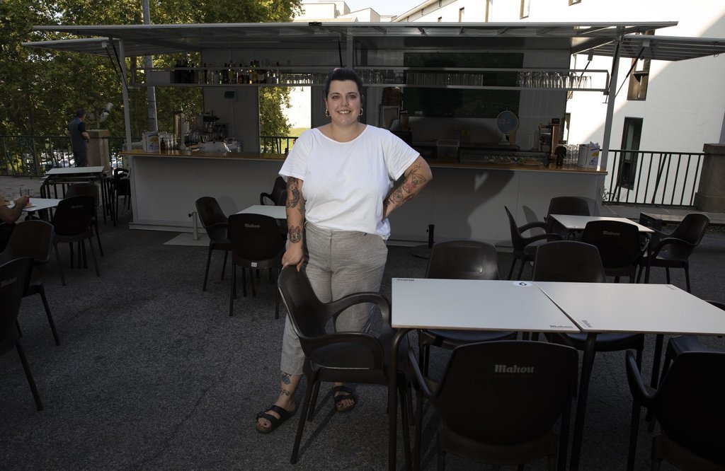 Joana, encargada de la terraza en el Museo de Navarra que gestionan los bares Oreja y Lanbroa. FOTOS: UNAI BEROIZ
