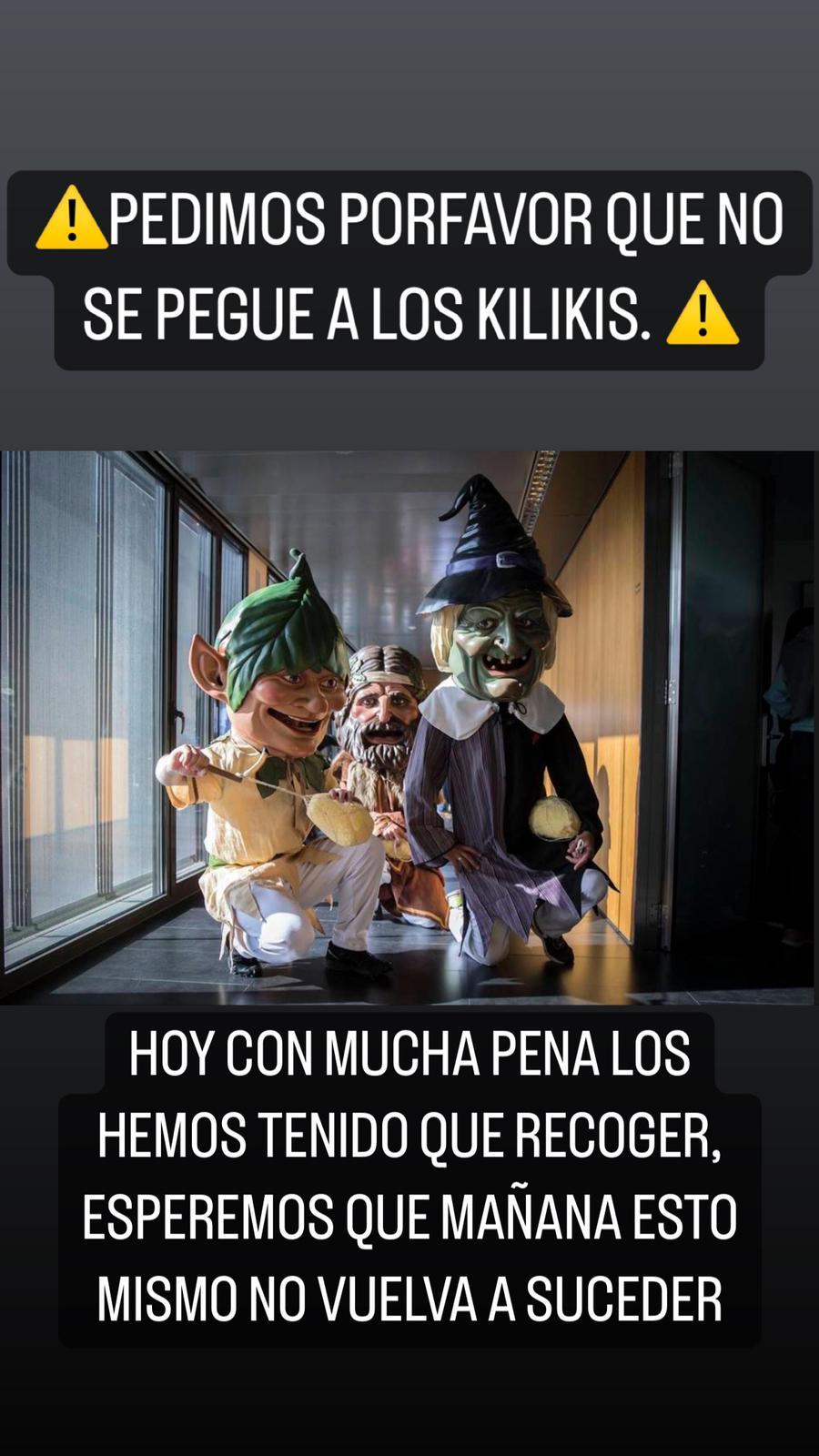 También quiere dejar clara la indefensión que tienen los portadores de kilikis y gigantes cuando desfilan entre el público, porque "tenemos muy poca visibilidad y movilidad" y, además, "el kiliki tampoco está para defenderse de esos ataques, por eso nos marchamos". Incide además en que, en el caso de estos menores, como "no hay adultos responsables, pues quedan impunes", ya que son más preadolescentes que van solos.