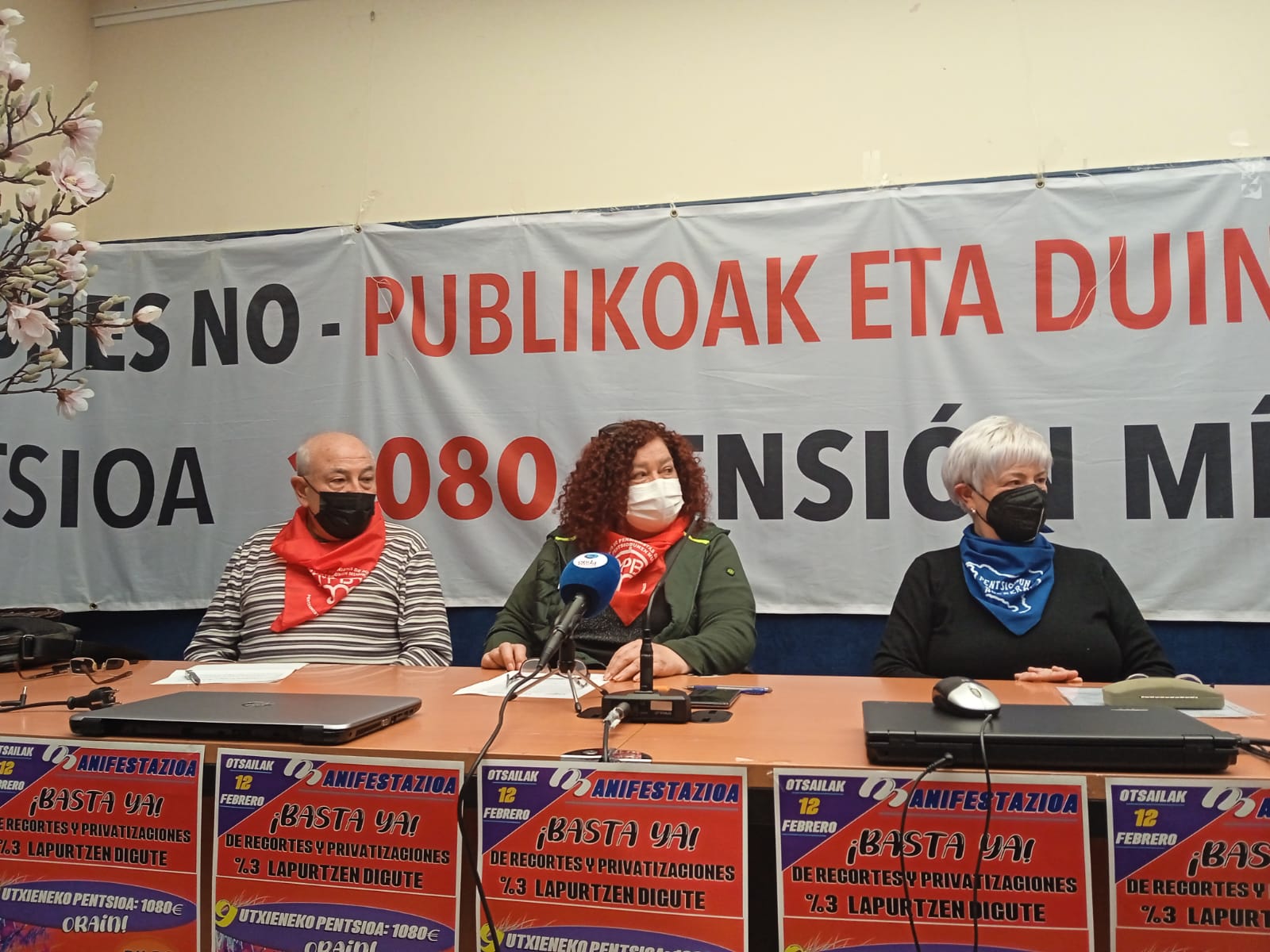 Además, piden que las pensiones mínimas se aumenten hasta superar el umbral de la pobreza, ya que más de dos millones y medio de personas reciben una renta que no supera los 650 euros. La portavoz de los pensionistas vascos, Andrea Uña, llama a la ciudadanía a movilizarse para exigir unas pensiones dignas y garantizar pensiones públicas dignas en el futuro. Rechazan la privatización total o parcial.
