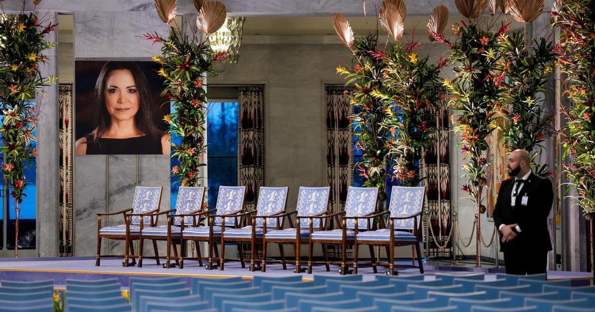 Minutos antes de la ceremonia, el Instituto Nobel ha publicado un comunicado para confirmar que Machado no podría estar presente pese a "hacer todo lo que estaba en su mano para llegar a la ceremonia". "Un viaje en una situación de extremo peligro", ha dicho, junto a una grabación de una conversación telefónica con la opositora en la que confirmaba que se encontraba bien y de camino a la capital noruega.