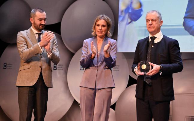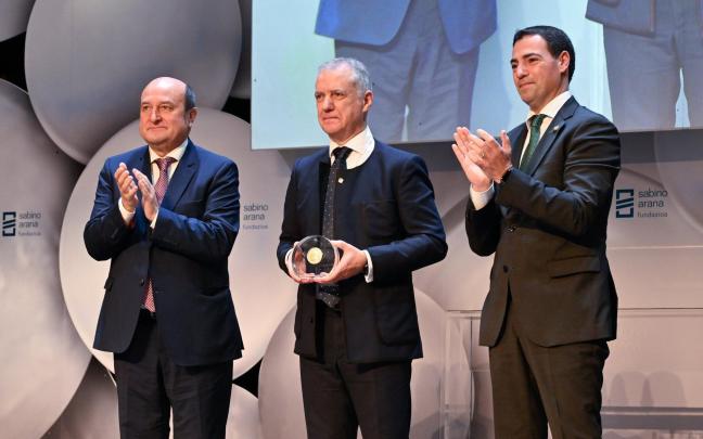 El colofón de la entrega de los Premios Sabino Arana ha puesto al anfiteatro en pie con la entrega del último premio a Iñigo Urkullu. En la ceremonia se ha reconocido las tres legislaturas al frente del Gobierno vasco en los que ha mantenido un compromiso con el estado de bienestar y la identidad vasca frente a los populismos. Una labor que ha servido para asentar los cimientos de una Euskadi abierta al mundo construida sobre valores como la integridad, la solidaridad y la integración.