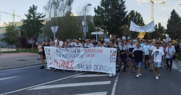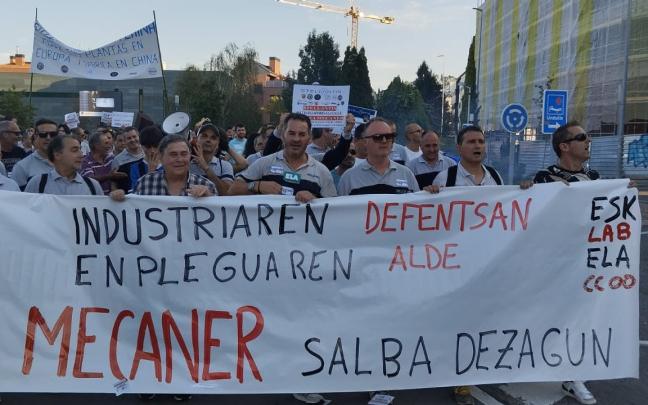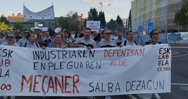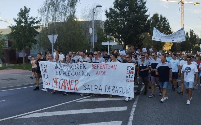 Los 144 trabajadores de Mecaner y sus familias se manifestaron ayer ante el Ayuntamiento de Urduliz para denunciar el cierre de la histórica troquelería bizkaina.