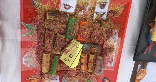 Además, en la sala de profesores se ha dejado purpurina de colores para aliñar los platos (de color plateado para la sal y rojo para el tomate) y lanas de colores para añadir trocitos de queso.
