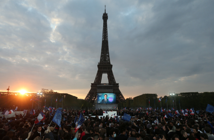 Los seguidores de Macron, ante la Torre Eiffel. AFP