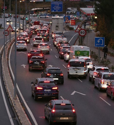 Atascos a primera hora de la mañana en la entrada a Pamplona por Zizur Mayor, en la A-12.