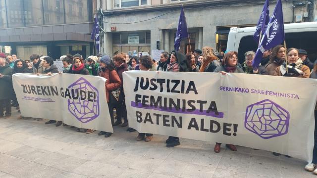 La sesión se ha prolongado durante casi cinco horas, mientras en el exterior del Palacio de Justicia en Bilbao se ha concentrado Gernikako Sare Feminista para mostrar su apoyo a la víctima y denunciar un sistema judicial que "no protege a las víctimas".