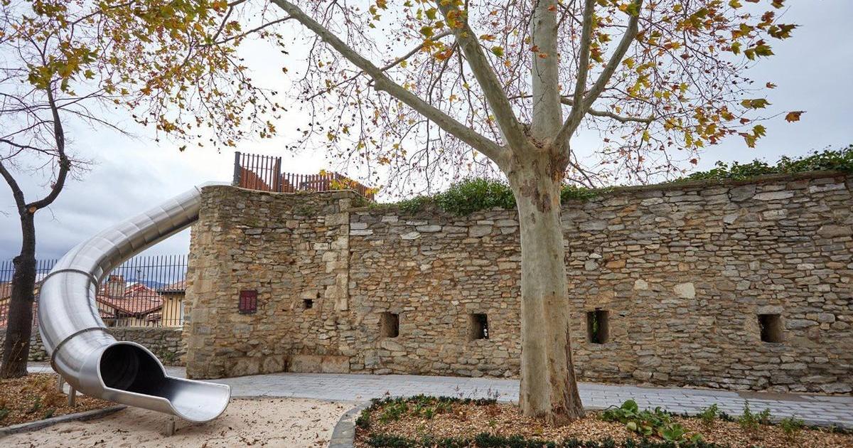 Aurreko zoladura kendu da espazio erakargarriagoa sortzeko, lore ugariko parterre organikoekin, banku eta harmaila berriekin, eta erabat berritutako jolasgunearekin. Hain zuzen, jolasgunean zabuak eta harresiari atxikitako gaztelu bat jarri dituzte, hodi itxiko txirrista handi batekin. Gainera, dorreetako bat begiratoki gisa egokitu da, Alde Zaharraren gaineko bistak eskaintzeko.