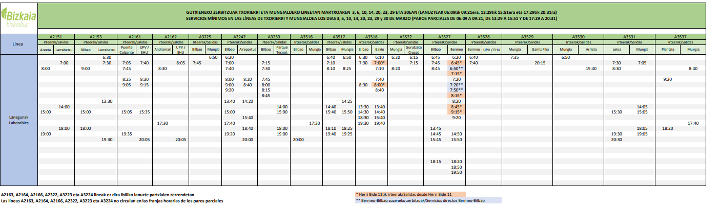 Hoy 1 de marzo los paros se centran en las líneas del Txorierri en tres tramos horarios que te detallamos a continuación: