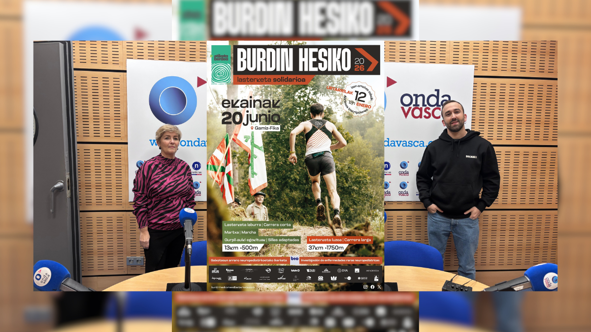 En el programa de hoy hablamos de la IV Edición de la Burdin Hesiko. La cita tendrá lugar el próximo 20 de junio en Gámiz-Fika. Como en anteriores ediciones ya no quedan dorsales para poder participar. Nos han acompañado en los estudios de Onda Vasca, Endika Portillo y Ainhoa Larrabe de Eperlanda. Además hemos contado con Katia Lezamiz, amatxu de Xare, que participará en la prueba de silla de ruedas. La carrera de montaña contará este año entre sus participantes con dos jóvenes más en sillas adaptadas (que pasas de 6 a 8) y también con un atleta invidente, con lo que se potencia la voluntad inclusiva de la prueba. También hemos contado con el atleta Ibai Pérez y con un histórico de las carreras de montaña como es Pedro Galarza.