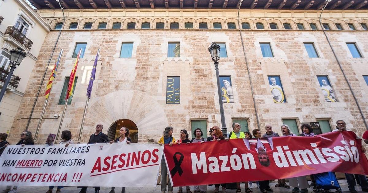Otras protagonistas del debate han sido las víctimas de la dana, que se han concentrado en el exterior de Les Corts para reclamar la dimisión del president y después en el pleno los representantes de dos asociaciones que seguían la sesión en la tribuna de invitados se han marchado mientras hablaba Mazón.