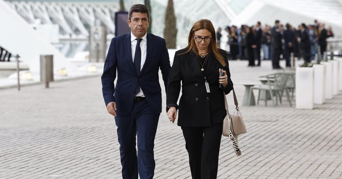 A su llegada, Mazón ha saludado brevemente al expresident de la Generalitat y del PPCV Francisco Camps, quien también asiste al funeral de Estado.