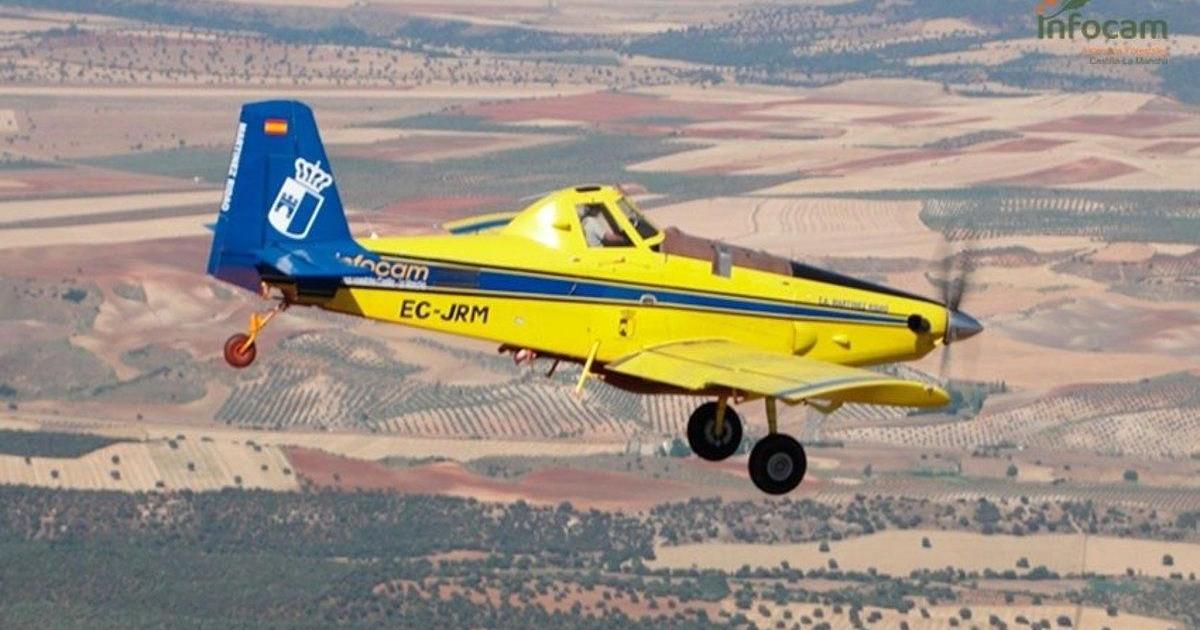 El Servicio de Prevención y Extinción de Incendios Forestales del Gobierno de Castilla-La Mancha trabaja para extinguir un incendio declarado en el paraje 'Cerro Piojo' de Almansa (Albacete), que ha provocado una gran columna de humo.