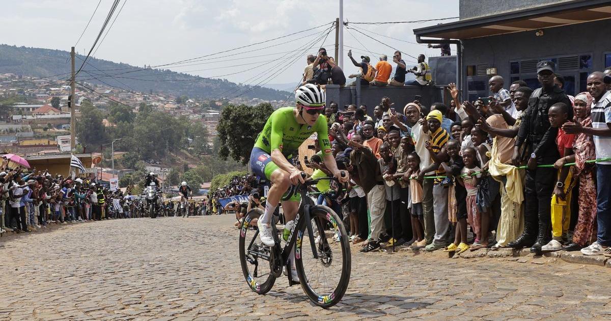 Tadej Pogacar, durante la ascensión al muro de Kigali.