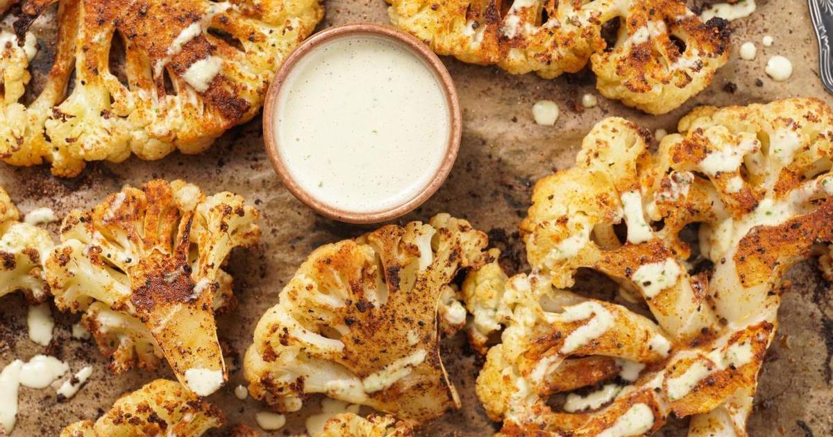 Primer plato: Coliflor al horno con salsa de yogur y tahini