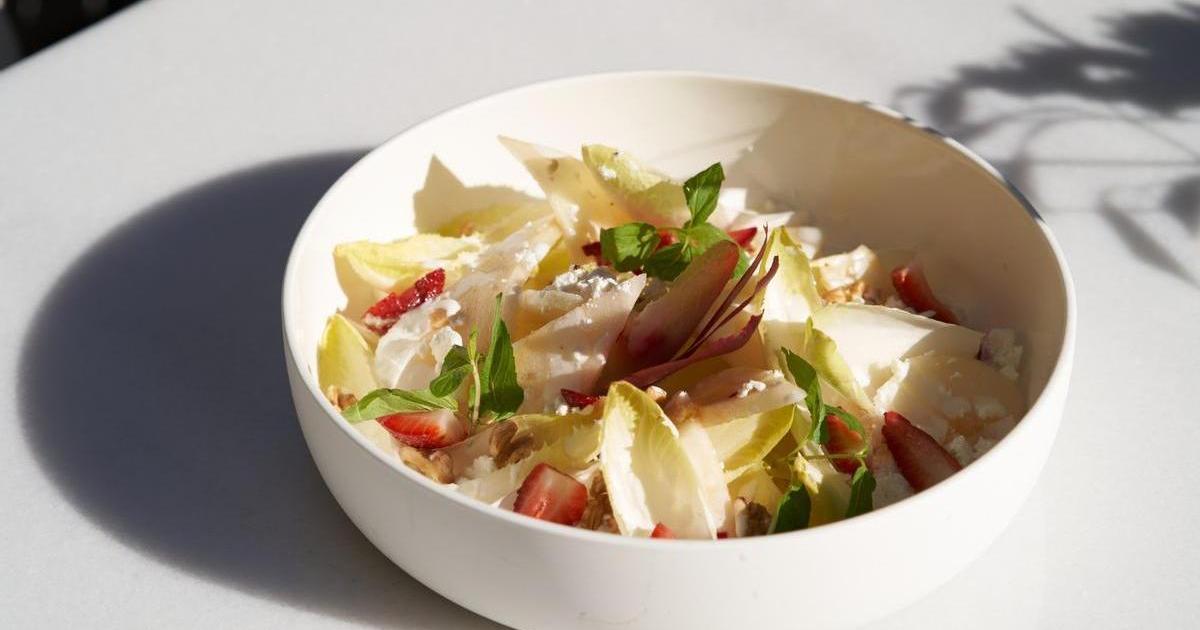 El menú comienza con una ensalada que destaca por su frescura y contraste de sabores. Las endivias, con su característico toque ligeramente amargo, sirven como base para una propuesta ligera que ayuda a abrir el apetito.