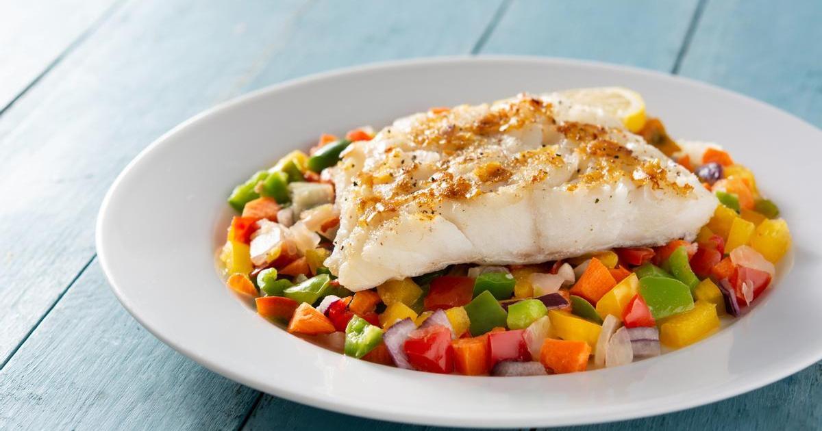 Un plato de pescado jugoso acompañado de verduras. / Freepik