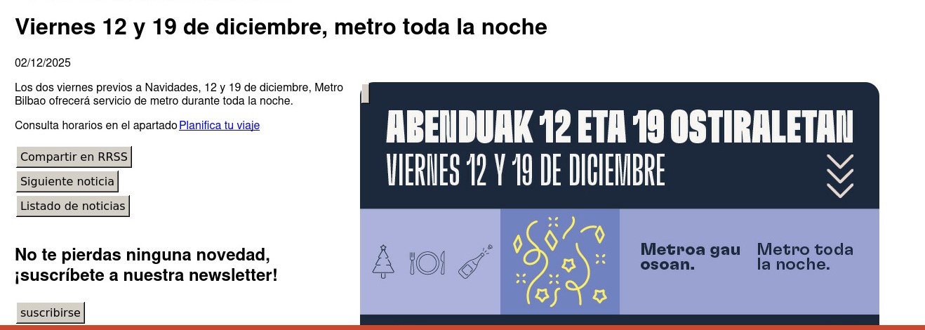 Por este motivo un año más Metro Bilbao adapta su servicio al aumento de la demanda durante dos fines de semana. Los viernes habitualmente el servicio finaliza a las 02:00 h, sin embargo, tanto el viernes pasado como hoy viernes 19 de diciembre se ha habilitado el servicio de 24 horas como refuerzo especial previo a las Navidades.
