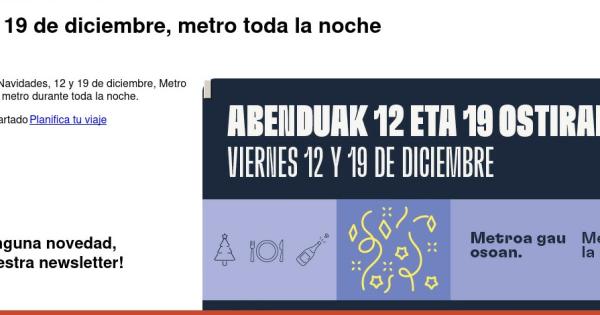 Desde Metro Bilbao recuerdan además que este domingo, 21 de diciembre, con motivo de la feria de Santo Tomás en Bilbao, las frecuencias se verán reforzadas durante toda la jornada.