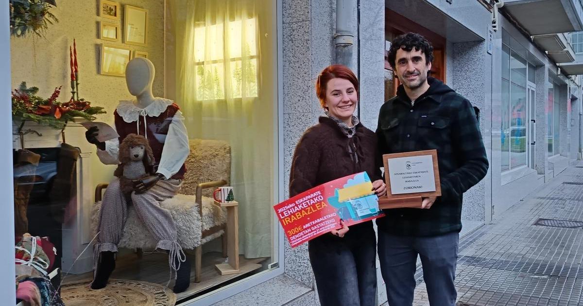La tienda de ropa Mimatu ha recogido esta tarde el premio que otorga el jurado (300 euros) del concurso de escaparates navideños que organiza el Ayuntamiento de Aretxabaleta. El galardón que se elige por votación popular (150 euros) se ha entregado, una vez más, al comercio de moda Belar Meta.