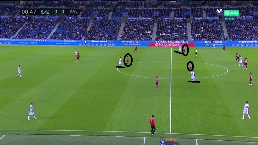 Hablamos mucho del rival porque lo hizo bien y condicionó a la Real, apostando por un partido de presiones altas, ritmo y mucho duelo. ¿Qué hicieron los nuestros?. De inicio, se vieron condenados a explotar la baza de Januzaj en banda, buscándole en corto (si se podía) y en largo.