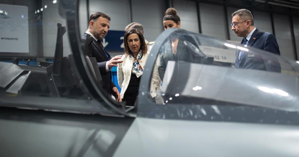 La ministra de Defensa, Margarita Robles, visita el avión de combate Hürjet desarrollado por Turkish Aerospace Industries (TAI), en la Feria Internacional de Defensa y Seguridad de España (FEINDEF), en IFEMA, a 13 de mayo de 2025, en Madrid / EP