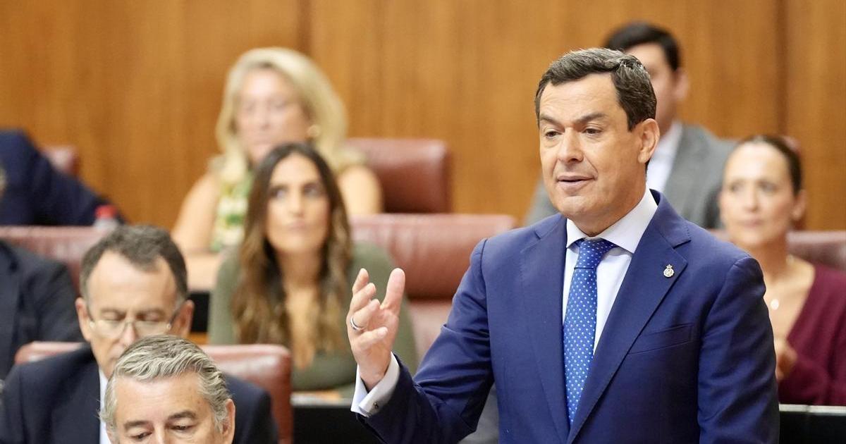 El presidente de la Junta de Andalucía, Juanma Moreno, en el Parlamento andaluz.