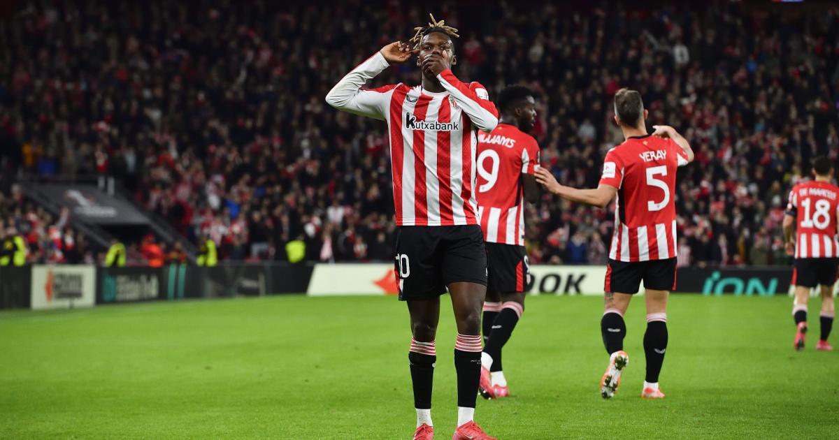 Nico Williams seguirá celebrando como rojiblanco sus goles, como este al Viktoria Plzen. / ATHLETIC CLUB