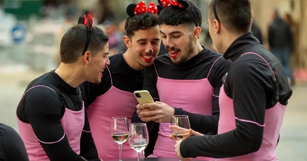 Un grupo de amigos disfrazados de Minnie en una despedida de soltero.