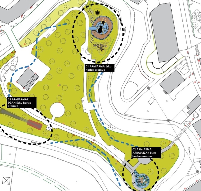 Contará con tres espacios diferenciados. Fotos: M. U. Se trata de un parque de juegos infantil que será muy completo y dará la oportunidad a los más pequeños de disfrutar de diferentes zonas de juego. En este sentido, tal y como explica Alaitz Erkoreka, concejala del área de Urbanismo del Ayuntamiento de Mungia, esta nueva zona de juegos infantiles "estará compuesta por tres sectores". Esto posibilitará que, "dependiendo de la edad de las personas a las que está destinado cada uno de ellos", tengan la oportunidad de disfrutar de alguno de los elementos que se instalarán en este espacio de ocio infantil. En primer lugar, la zona para niñas y niños de entre 6 y 12 años contará con juegos de equilibrio, toboganes, juegos trepadores y un espacio de esparcimiento.