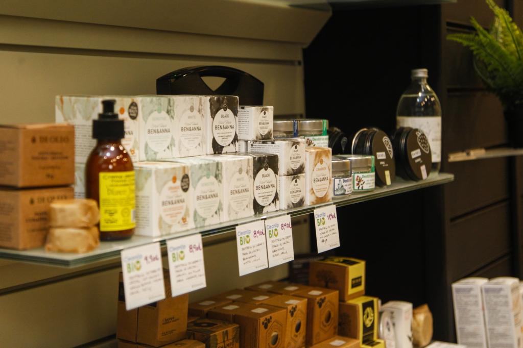 En sus baldas de cuidado personal también se pueden encontrar productos de bambú, en los que está especializado un matrimonio de Mondragón: desodorantes en crema que vienen en lata, acondicionador, maquinillas de afeitar... "Hay productos que son de alta cosmética que nada tiene que ver a Lancòme. Muchas veces esos productos tienen un aspecto y textura parecida. Aquí pueden sentir y oler ingredientes sin origen animal". Hay cremas que son hidratantes y regenerantes que pueden servir para todo, "como la que vendo a envase de un litro, que sirve para todo". Y jabones enriquecidos con aceite de karité, argán, con árbol de té, rosa mosqueta... Que vende a peso, a 4,50 euros los 100 gramos.