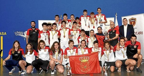 Las selecciones navarras de pelota vasca infantil y cadete cerraron la temporada proclamándose campeones de España de Federaciones en Edad Escolar en frontón de 30 y 36 metros este fin de semana en las localidades vallisoletanas de Íscar y Pedrajas de San Esteban con cinco oros y dos platas.
