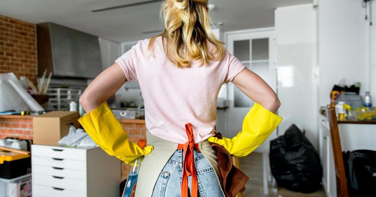 Una empleada de hogar limpia la encimera de la cocina, en una imagen de archivo