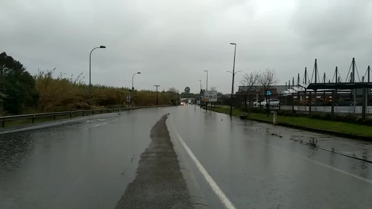 Rotonda de Asua cortada por una balda de agua. Vídeo: Jose Mari Martínez