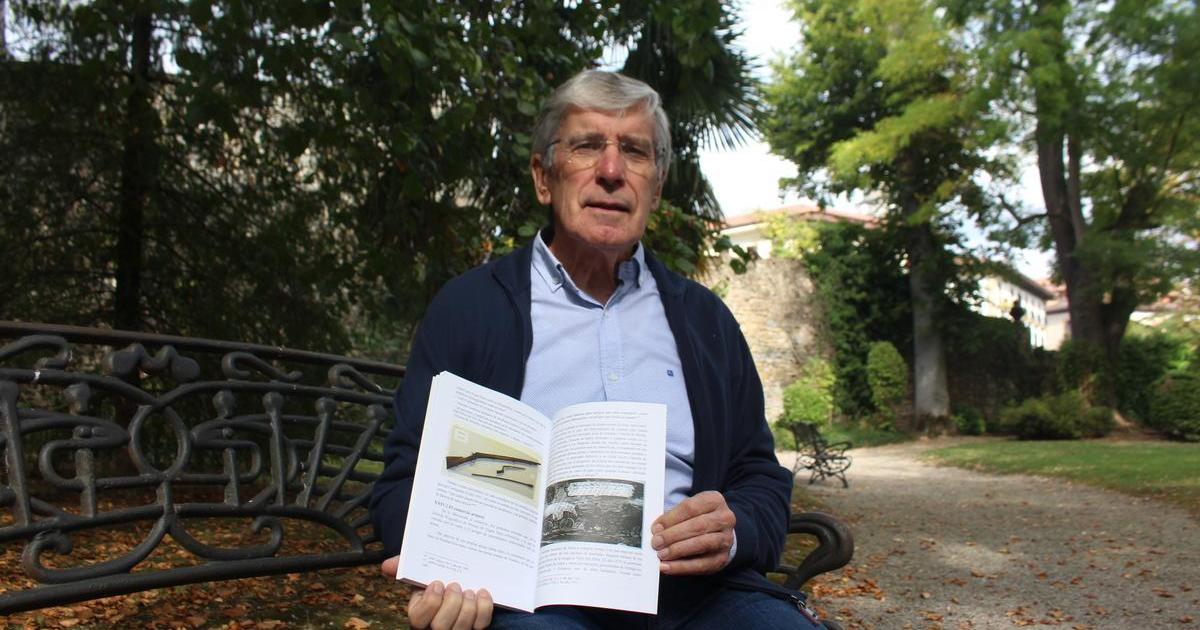 José Antonio Azpiazu mostrando el libro 'Oficios tradicionales en la historia de Oñati y su entorno'. / Anabel Dominguez.