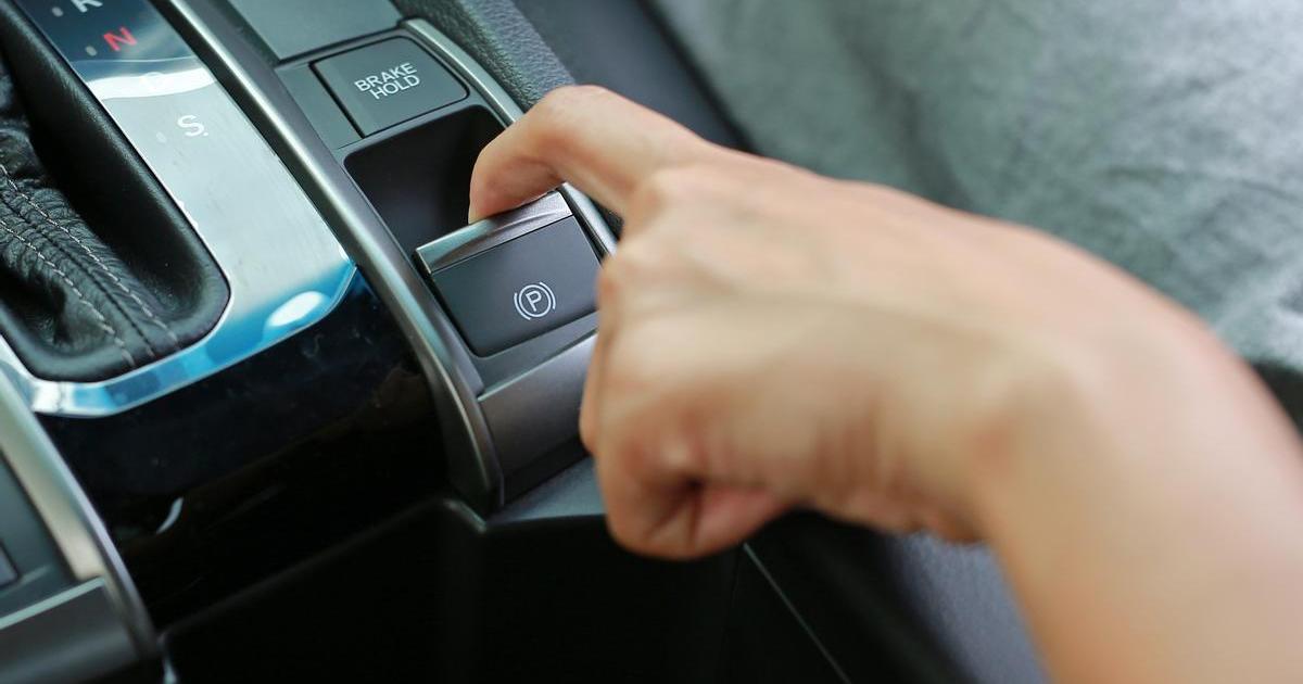 Una persona acciona el freno de mano eléctrico de su coche. / Freepik