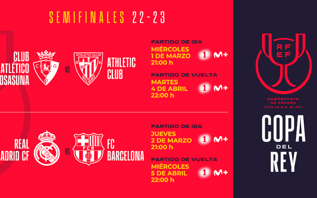 El partido de ida en El Sadar será a las 21.00 horas y la vuelta en San Mamés, a las 22.00