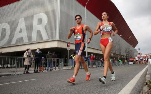 Alberto Amezcua y María Pérez consiguen el oro en la prueba disputada en Pamplona. El navarro Dani Ballesteros logró un décimo puesto y el récord navarro absoluto en 20 kilómetros marcha