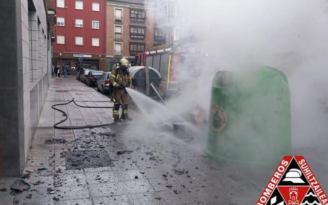 Arden varios contenedores en el centro de Vitoria