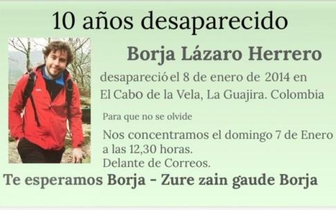 Familiares y amigos de Borja Lázaro se concentran este domingo en Gasteiz en el 10º aniversario de su desaparición