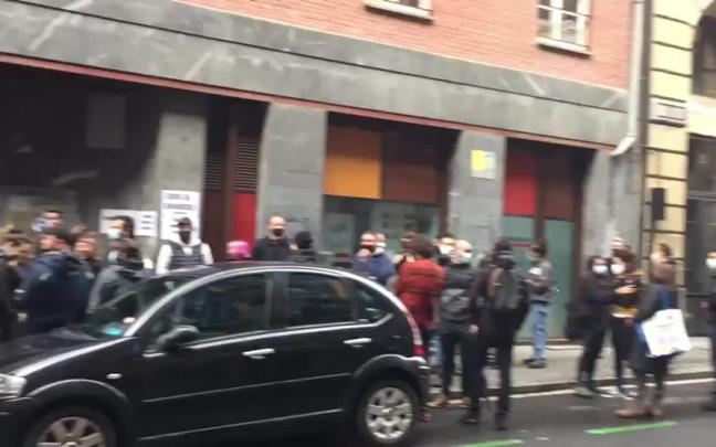 Un centenar de personas se ha concentrado para impedir el desalojo de la joven que ocupó un piso de Viviendas Municipales con su bebé tras quedarse sin trabajo