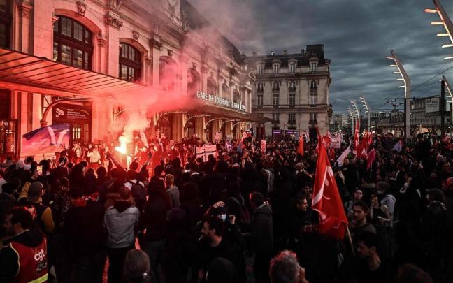La Policía ha cargado contra los manifestantes, que han quemado contenedores y destrozado mobiliario urbano tanto en la capital gala como en Burdeos