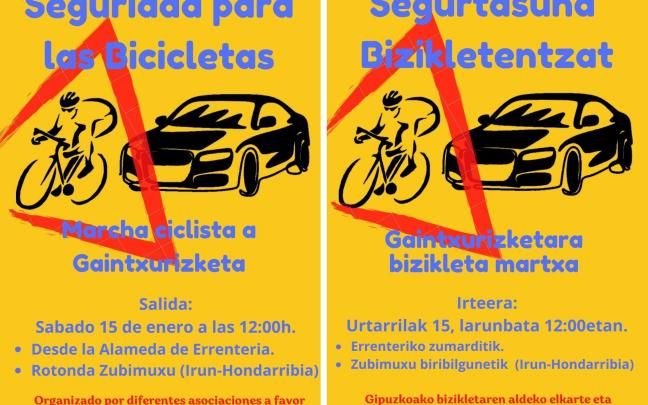Dos salidas en bici partirán de Irun/Hondarribia y de Errenteria para juntarse en Gaintxurizketa, donde denunciarán que este "sigue siendo un punto negro para los ciclistas".