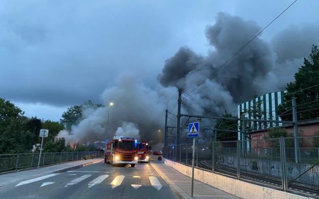 Un incendio declarado en un pabellón industrial de Lemoa ha obligado a desalojar a una veintena de personas y el fuego ha hecho que colapse el edificio y se ha derruido