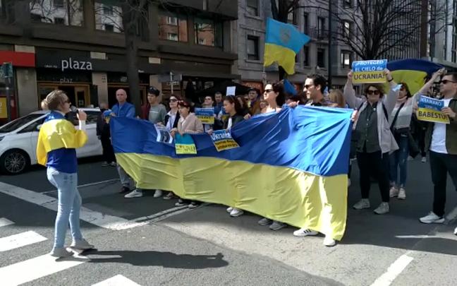 Cientos personas se han manifestado este domingo en la capital vizcaina bajo el lema "Viva Ucrania, fuerte, resiliente y libre"