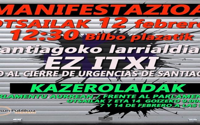 La plataforma Osasun Publikoa Aurrera se manifiesta contra el cierre de las Urgencias de Santiago
