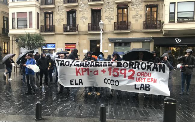Donostia: trabajadores de la OTA, en huelga, protestan ante el Ayuntamiento de Donostia