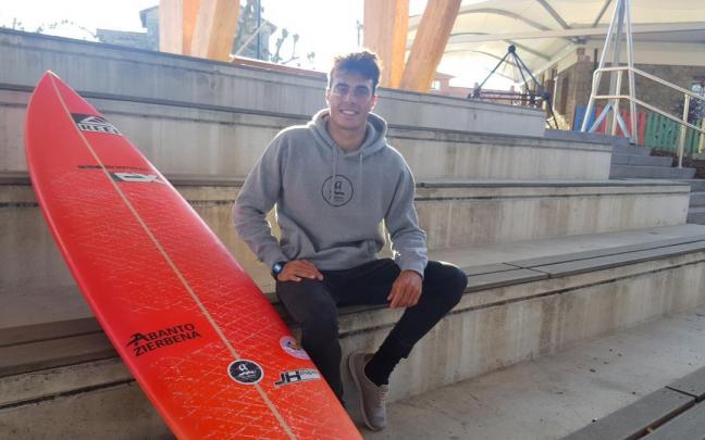 Lander Sánchez, el surfista con raíces mineras que se ha cogido un año sabático para preparar unas oposiciones con los que espera alcanzar la estabilidad laboral. “Estoy enfrascado en el estudio…