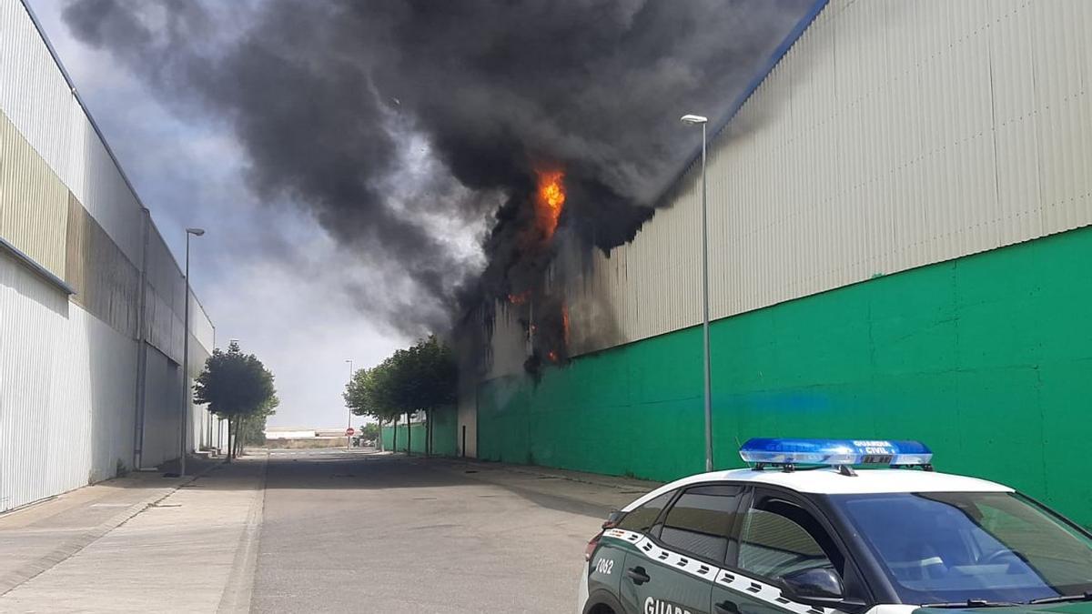 Los agentes de la Guardia Civil han realizado un cinturón de seguridad en la zona para el tránsito de personas y para la circulación de vehículos debido al humo que desprende el incendio. También han procedido al desalojo de los trabajadores de tres naves colindantes, han informado desde este cuerpo.